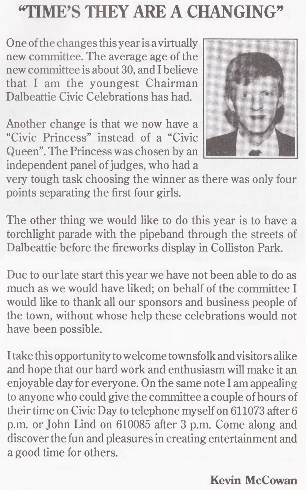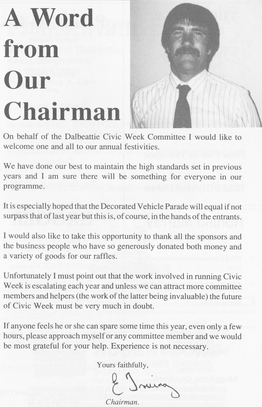 A special plee went out from Mr Lind to save Civic Week, as they were a very small band of volunteers and they needed new members.