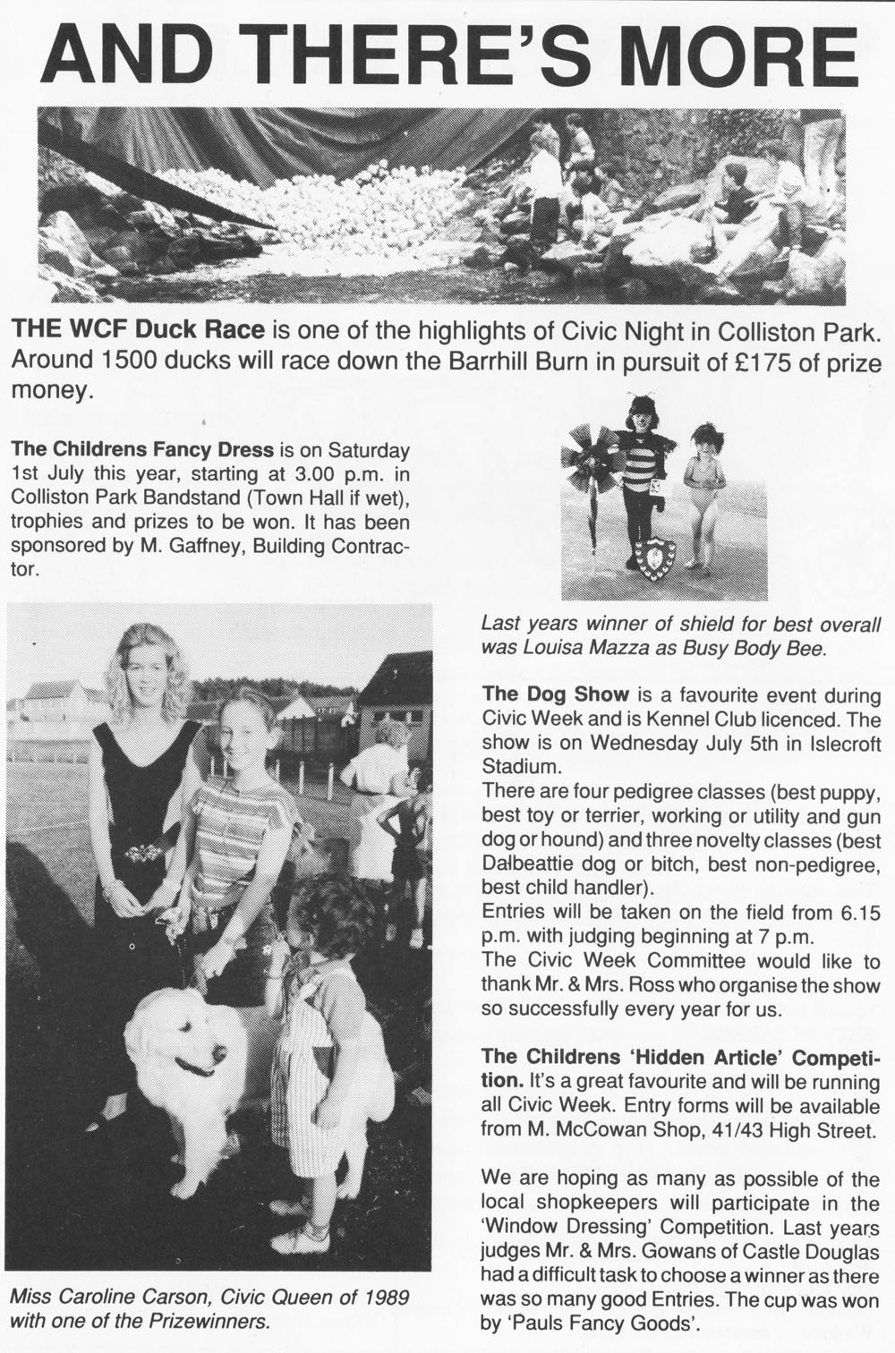 Dalbeattie Museum does not have a programme for 1994. We believe there was no Civic Week in 1994, as the booklet in 1995 says " We are back".