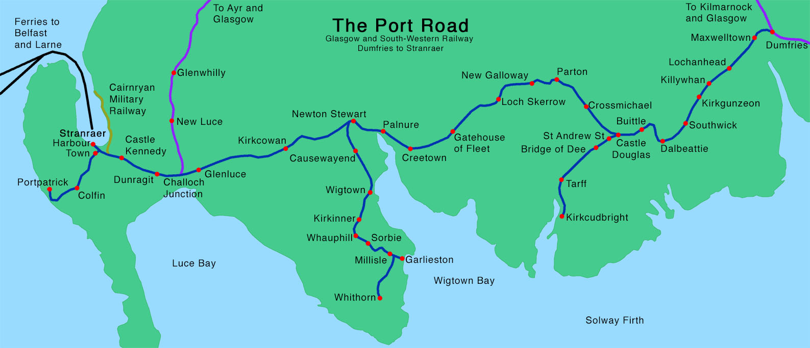 The "Paddy Line" or "Port Road" was the name given to the Glasgow and South-Western Railway line between Dumfries and Stranraer as it provided a link to the port of Stranraer where ferries ran to Northern Ireland.