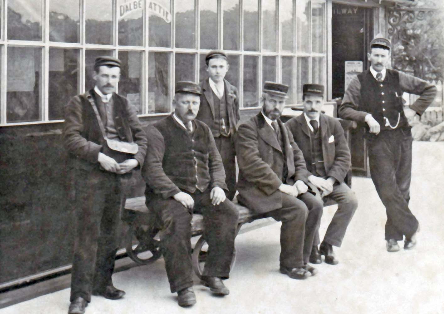 Dalbeattie station was located to the north of the town. Initially consisted of a single platform with a stone station building. It was expanded to a double track operation in 1888/89, along with a new east bound platform, timber waiting room and bridge connecting the two platforms. To the west of the station was the signal box. The nameplate from the signal box can be seen in the museum.